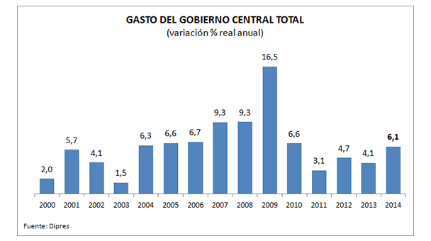 Gasto del Gobierno Central Total 2000-2014 (como % variación real anual)